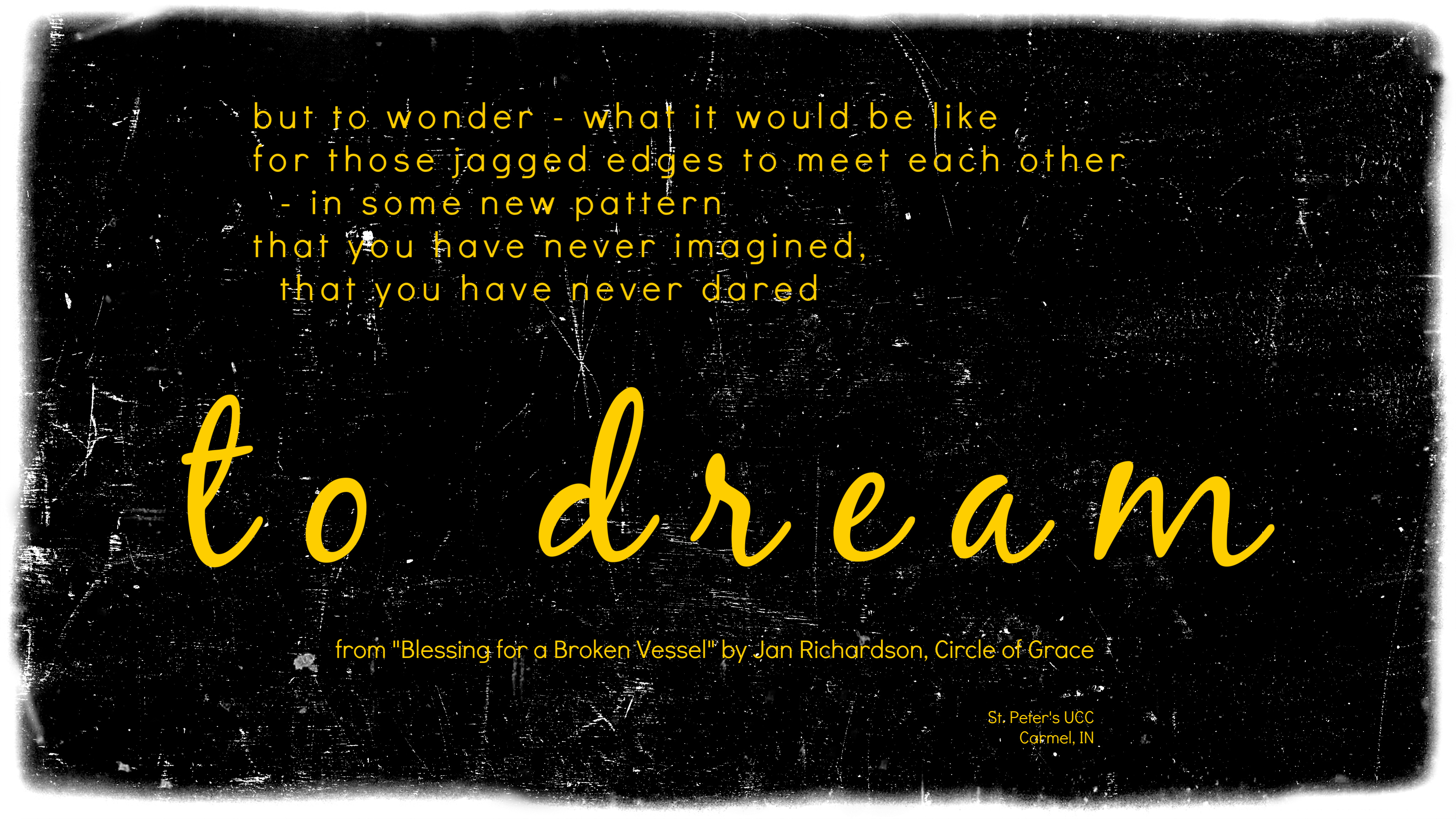 “Blessing for a Broken Vessel" by Jan Richardson from Circle of Grace, page 144.)