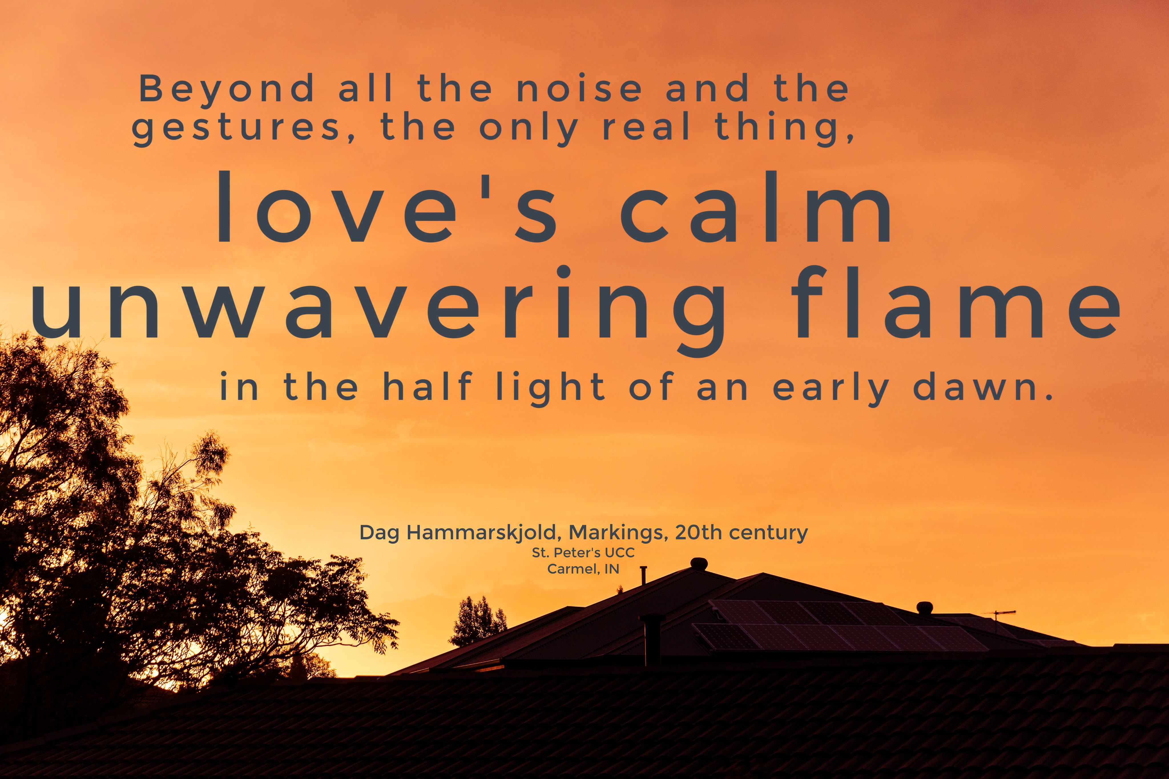 "You wake from dreams of doom and--for a moment--you know: beyond all the noise and the gestures, the only real thing, love's calm unwavering flame in the half-light of an early dawn."