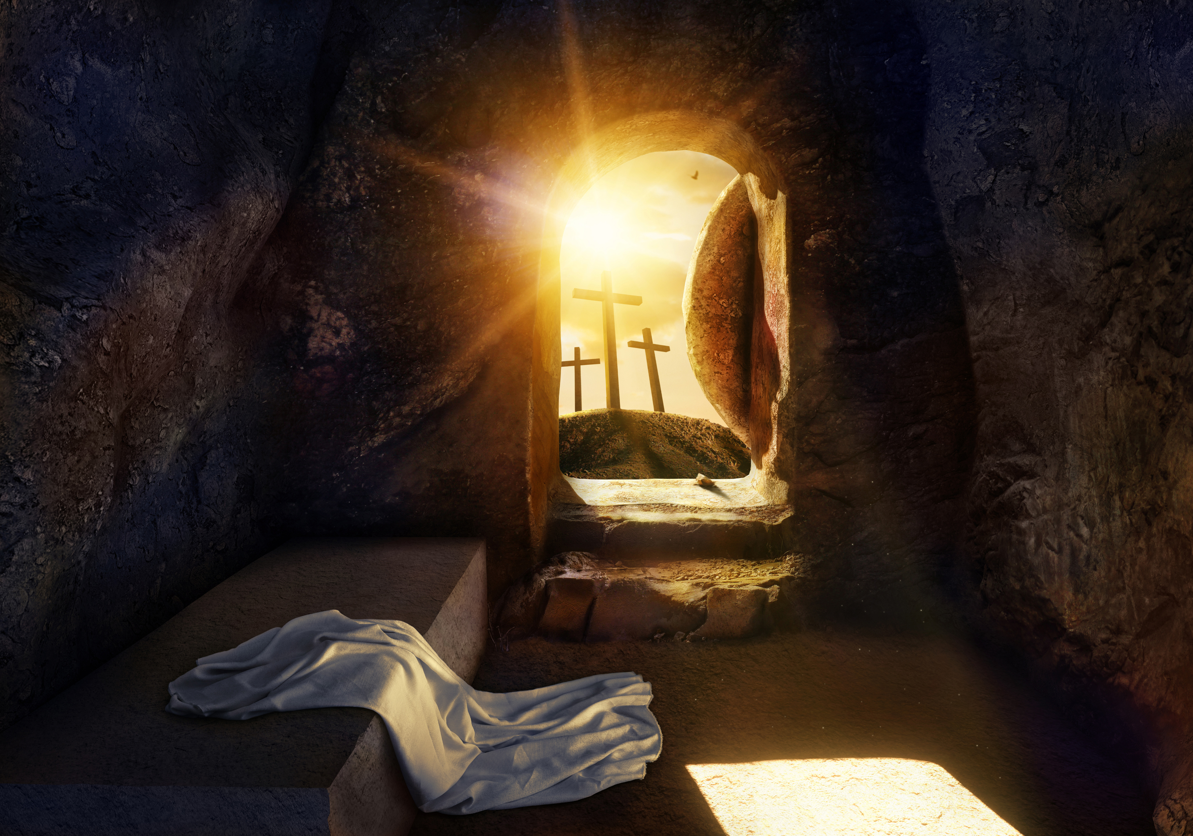 Early in the morning on the first day of the week, while it was still dark, Mary of Magdala came to the tomb. She saw that the stone had been rolled away from the entrance, (2) so she ran off to Simon Peter and the other disciple-the one Jesus loved-and told them, “The Rabbi has been taken from the tomb! We don’t know where they have put Jesus!” (3) At that, Peter and the other disciple started out toward the tomb. (4) They were running side by side, but then the other disciple outran Peter and reached the tomb first. (5) He didn’t enter but bent down to peer in and saw the linen wrappings lying on the ground. (7) and saw the piece of cloth that had covered Jesus’ head lying not with the wrappings. But rolled up in a place by itself.