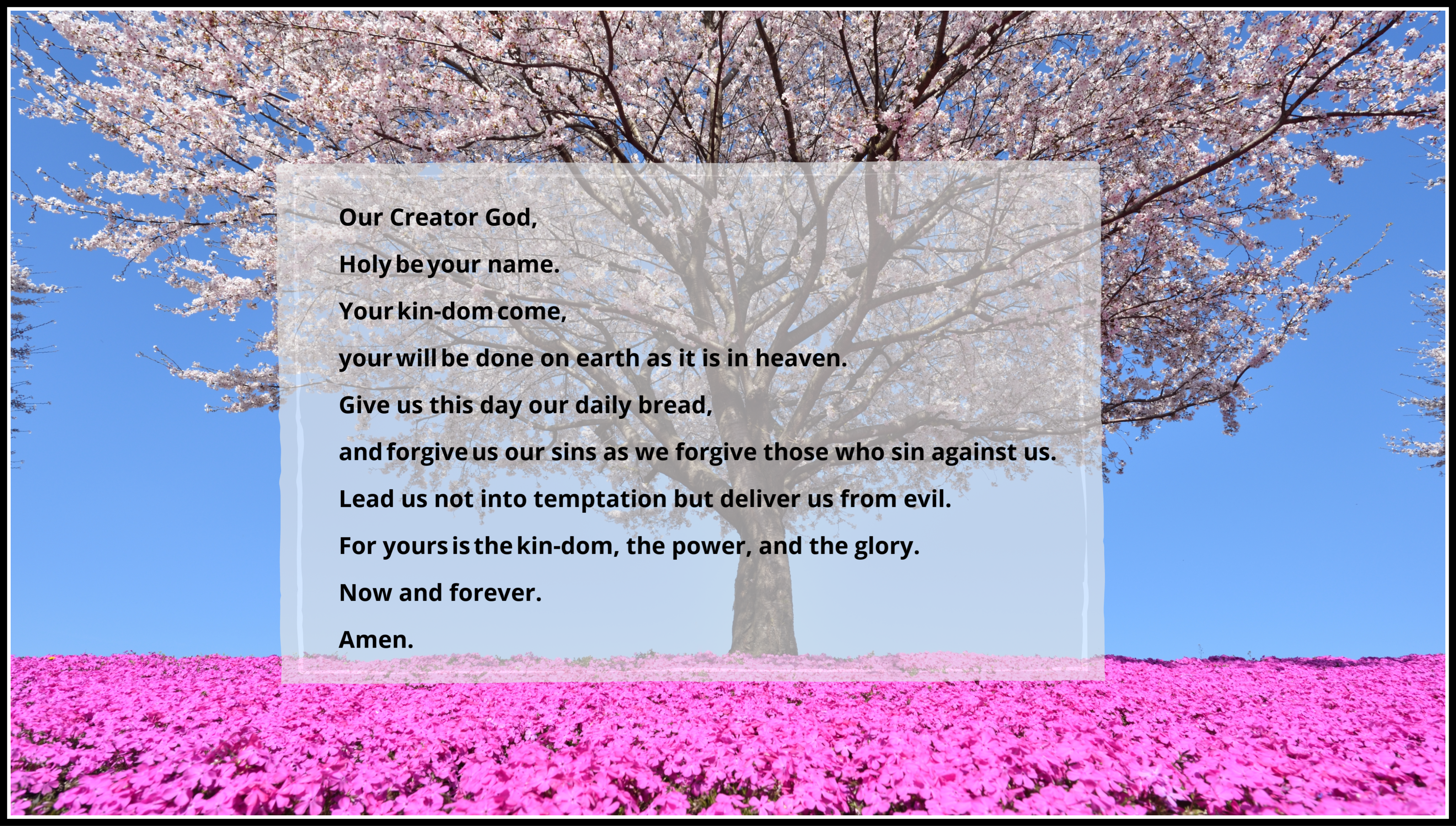Pray in whatever way suits you. If it makes sense to you, consider praying the Prayer of Our Creator to close this time of intercession.