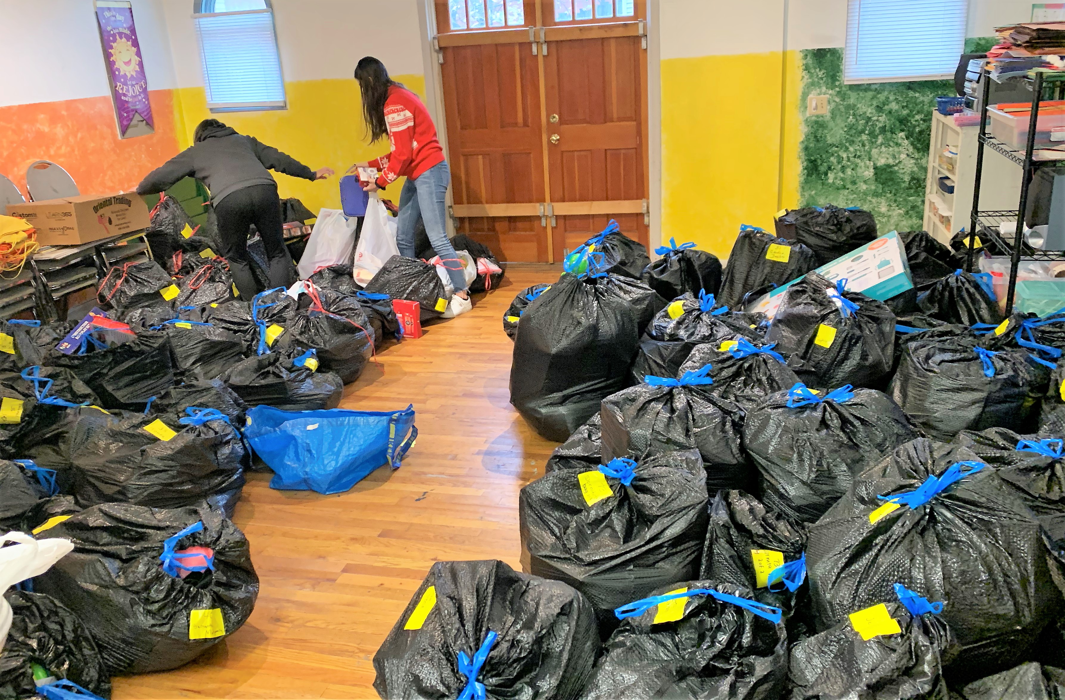Volunteers do their best to fulfill wish lists and place the contents in a bag for pick up.