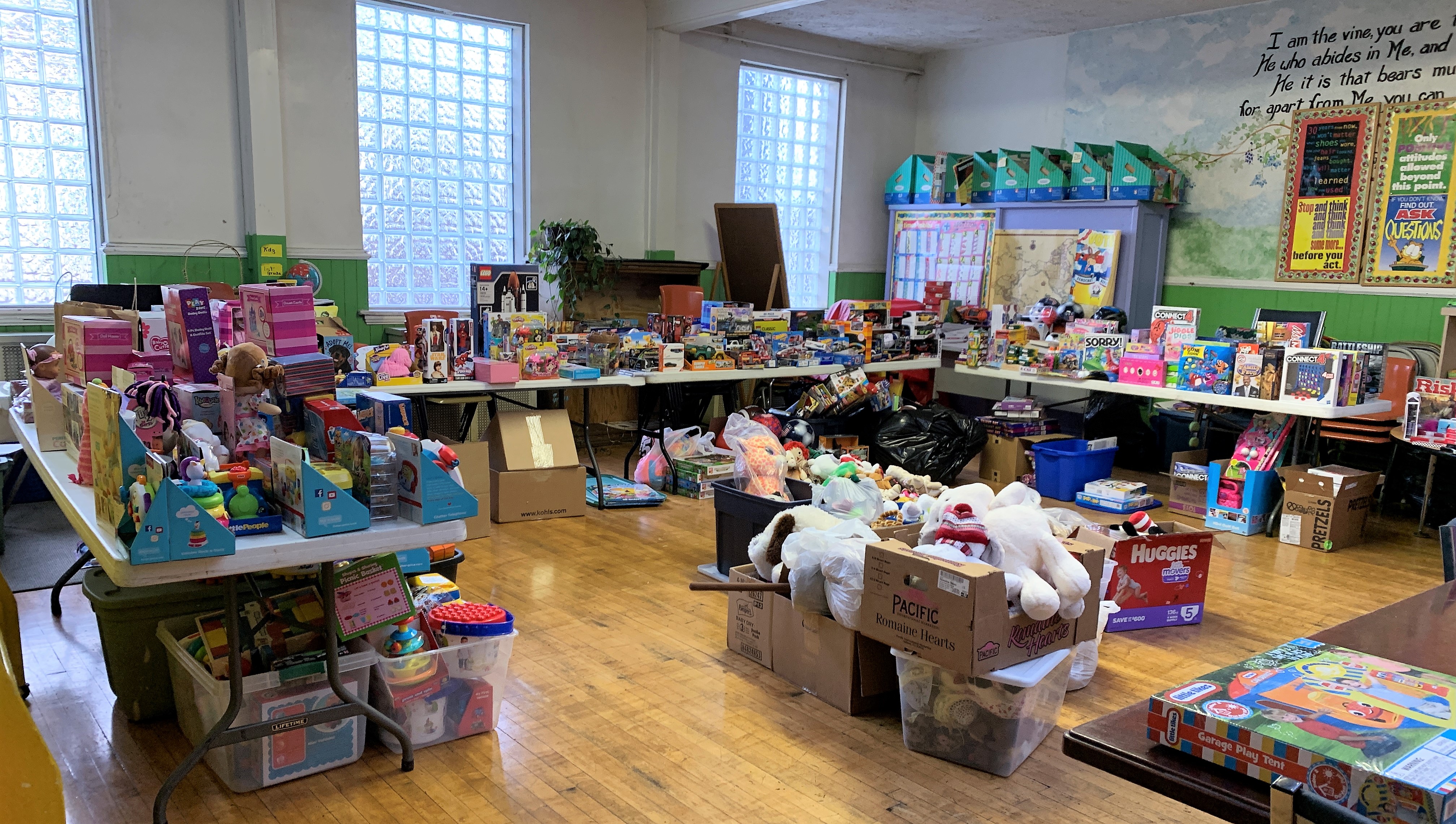 Gifts to the Manger provides an opportunity for parents/guardians from the community to come and shop at no cost for gifts for their kids for Christmas. Volunteers and donors provide toys, puzzles, games, dolls, and clothing that are available for registered families to receive. Prior to 2020, the experience was set up like a store where families came to shop. Volunteers would travel to WUCC for the weekend and set up the store, organize shopping areas, make trips to buy items needed, assist parents who came to shop, and then clean it all up at the end of the weekend.