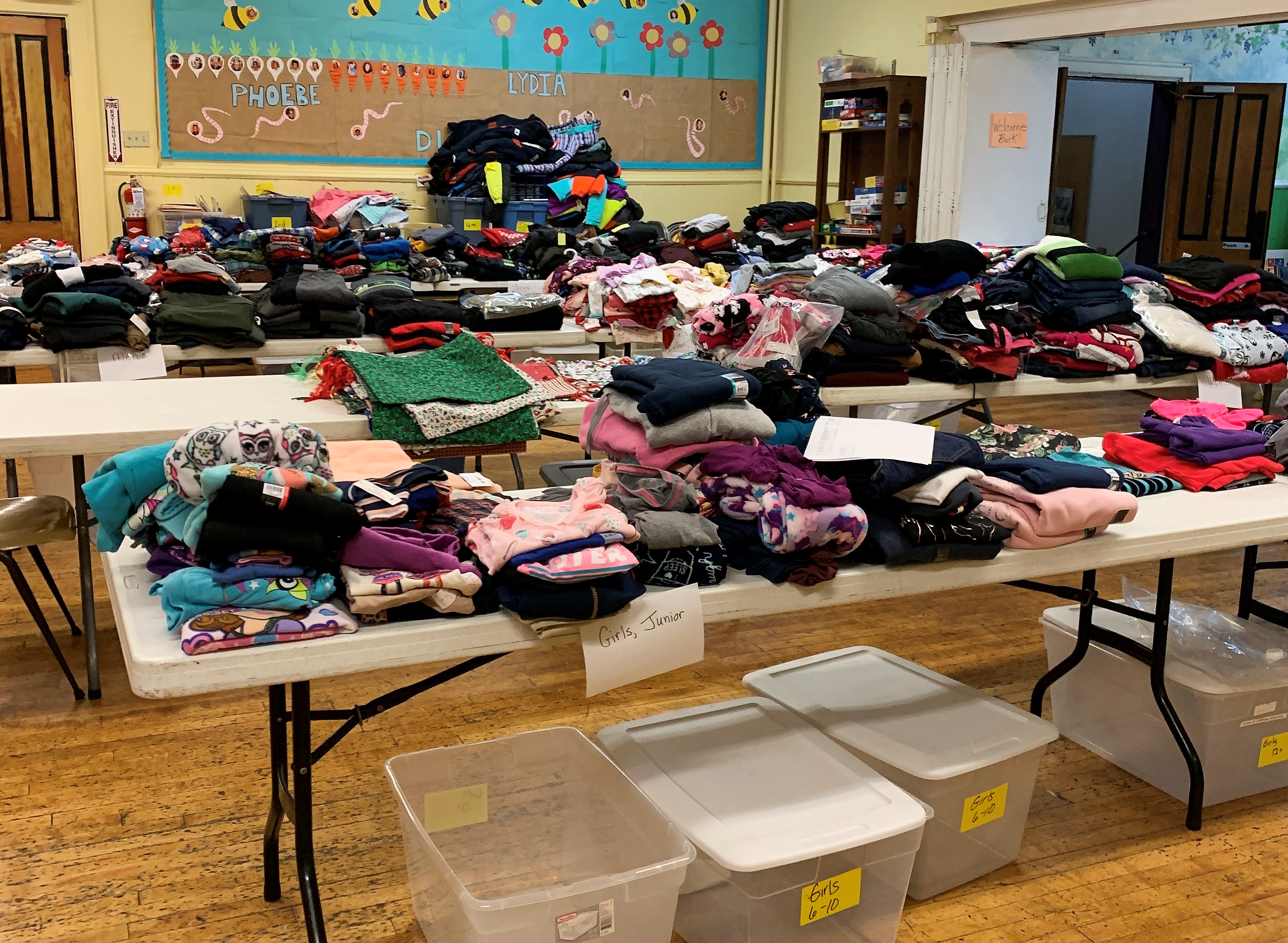 ● An important task is pulling all of the donations up from the basement and setting them up in the store. Sorting and organizing is a major task. Donations have always been sorted by age and by gender – but there is joy in a new change! Starting next year, donated toys will only be sorted by age. WUCC is an Open and Affirming congregation – and this is a step towards being welcoming of all.