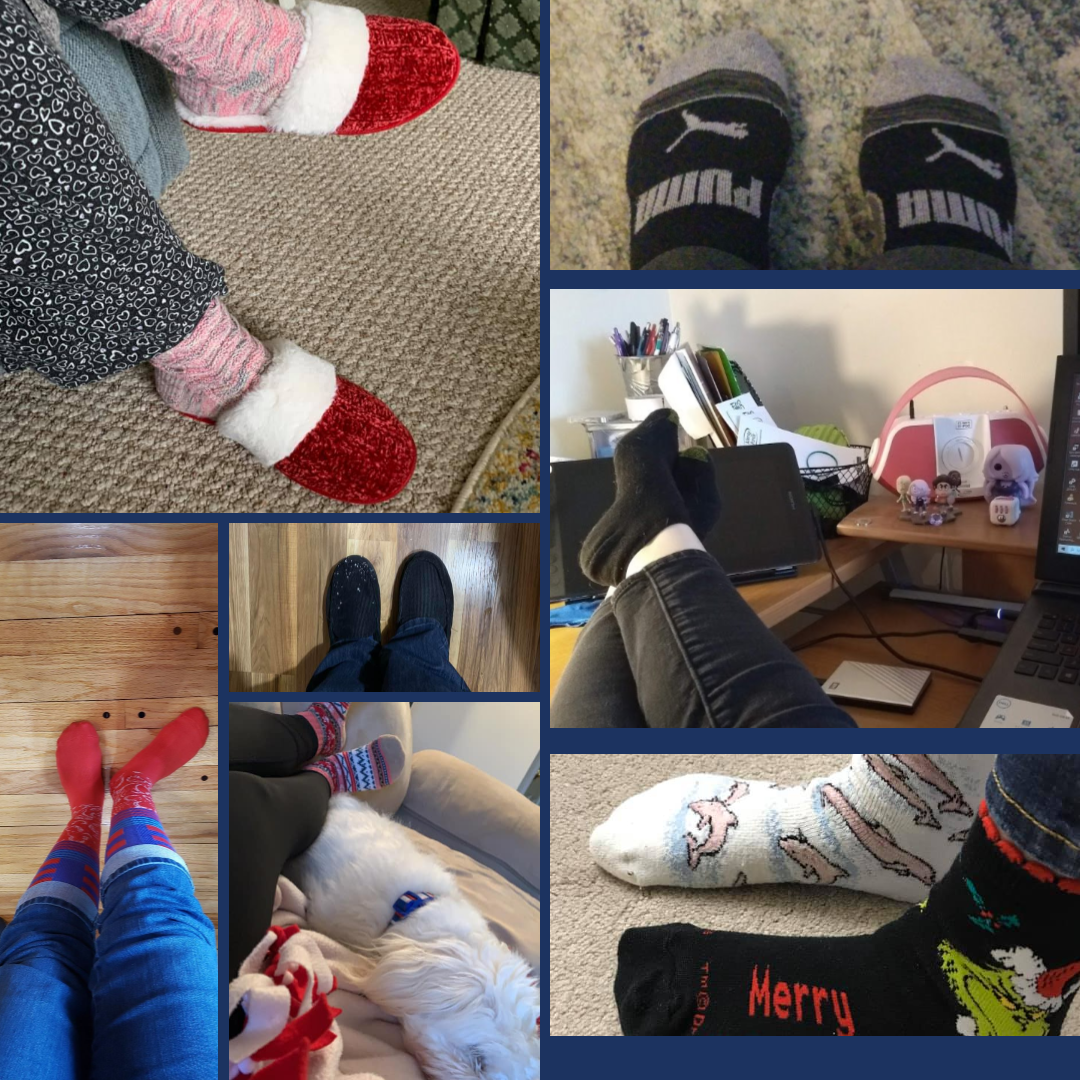 That’s Becca’s latest Holy Ground… her feet, in slippers, mis-matching Harry Potter socks, on her rainbow doormat made of old lobster trap rope. Beautifully fitting, isn’t it?
